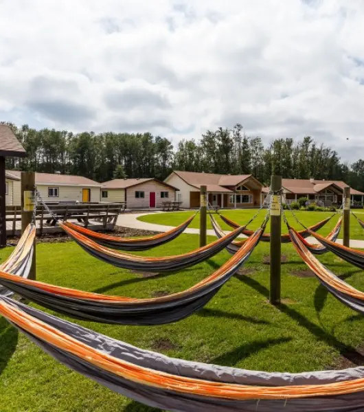 We have six cabins for you to stay in, from a dorm-room style to a more rustic experience.